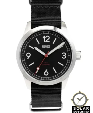 Eine Field-Uhr mit einem vielseitigen 38.5mm Gehäuse, das an fast jedes Handgelenk passt, gefertigt aus Edelstahl mit einem Zifferblatt in schwarz und einer besonderen "matte"-Oberfläche.