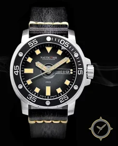 Eine Taucheruhr-Uhr mit einem vielseitigen 38mm Gehäuse, das an fast jedes Handgelenk passt, gefertigt aus Edelstahl mit einem Zifferblatt in schwarz und einer besonderen "matte"-Oberfläche.
