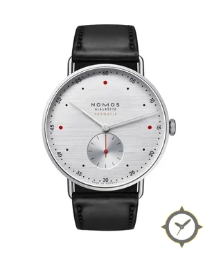 Eine Minimalistisch-Uhr mit einem 36mm Gehäuse im Vintage-Stil gefertigt aus Edelstahl mit einem Zifferblatt in silber und einer besonderen "horizontal brushed"-Oberfläche.
