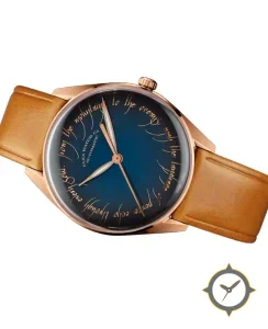 Eine Dress-Uhr mit einem markanten 45mm Auftritt am Handgelenk, gefertigt aus Gold mit einem Zifferblatt in blau und einer besonderen "fumé gradient lacquer"-Oberfläche.