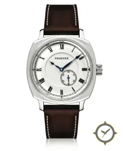Eine Dress-Uhr mit einem markanten 44.5mm Auftritt am Handgelenk, gefertigt aus Edelstahl mit einem Zifferblatt in weiß und einer besonderen "enamel (glossy)"-Oberfläche.
