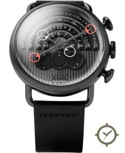 Eine Chronograph-Uhr mit einem vielseitigen 41mm Gehäuse, das an fast jedes Handgelenk passt, gefertigt aus Edelstahl mit einem Zifferblatt in grau und einer besonderen "vertical ribbed texture with sunburst gradient"-Oberfläche.