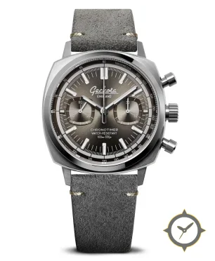 Eine Chronograph-Uhr mit einem markanten 42mm Auftritt am Handgelenk, gefertigt aus Edelstahl mit einem Zifferblatt in braun und einer besonderen "sunburst / gradient (fumé)"-Oberfläche.