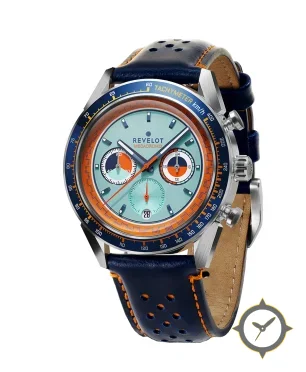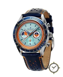 Eine Chronograph-Uhr mit einem vielseitigen 41mm Gehäuse, das an fast jedes Handgelenk passt, gefertigt aus Edelstahl mit einem Zifferblatt in türkis und einer besonderen "sunburst"-Oberfläche.