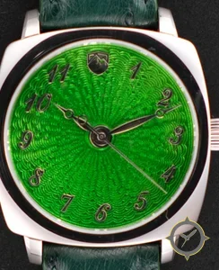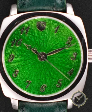 Eine Dress-Uhr mit einem vielseitigen 40.5mm Gehäuse, das an fast jedes Handgelenk passt, gefertigt aus Edelstahl mit einem Zifferblatt in grün und einer besonderen "guilloché (engine-turned)"-Oberfläche.