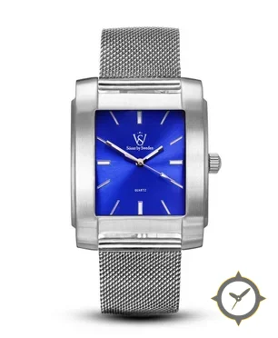 Eine Dress-Uhr mit einem 34.5mm Gehäuse im Vintage-Stil gefertigt aus Edelstahl mit einem Zifferblatt in blau und einer besonderen "metallic sunburst"-Oberfläche.