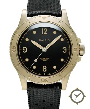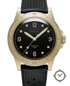 Eine Taucheruhr-Uhr mit einem 34mm Gehäuse im Vintage-Stil gefertigt aus Bronze mit einem Zifferblatt in schwarz und einer besonderen "matte"-Oberfläche.