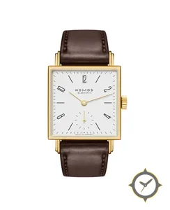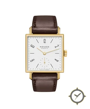 Eine Dress-Uhr mit einem 22.5mm Gehäuse im Vintage-Stil gefertigt aus Gold mit einem Zifferblatt in weiß und einer besonderen "matte"-Oberfläche.