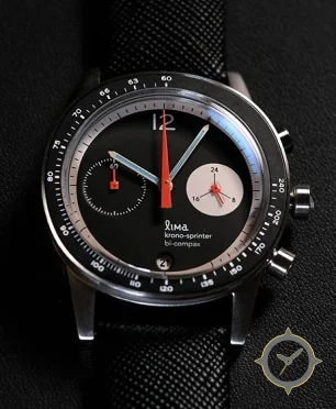Eine Chronograph-Uhr mit einem 30.5mm Gehäuse im Vintage-Stil gefertigt aus Edelstahl mit einem Zifferblatt in schwarz und einer besonderen "matte"-Oberfläche.