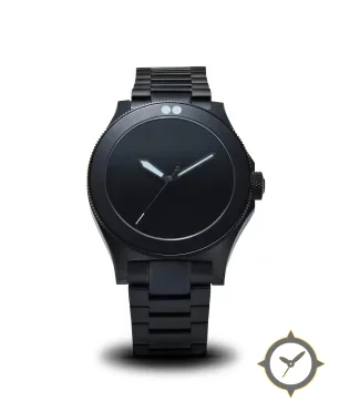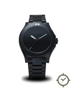 Eine Taucheruhr-Uhr mit einem 36mm Gehäuse im Vintage-Stil gefertigt aus Edelstahl mit einem Zifferblatt in schwarz und einer besonderen "matte"-Oberfläche.