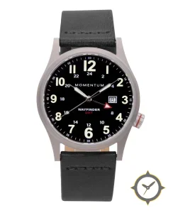 Eine GMT-Uhr mit einem 35mm Gehäuse im Vintage-Stil gefertigt aus Edelstahl mit einem Zifferblatt in schwarz und einer besonderen "matte"-Oberfläche und einer echten GMT-Funktion, mit der du eine zweite Zeitzone verfolgen kannst.