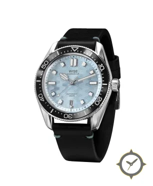 Eine Taucheruhr-Uhr mit einem vielseitigen 39mm Gehäuse, das an fast jedes Handgelenk passt, gefertigt aus Edelstahl mit einem Zifferblatt in türkis und einer besonderen "subtle geometric/chevron wave texture"-Oberfläche.