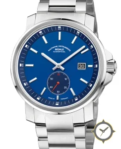 Eine Sport-Uhr mit einem vielseitigen 38.5mm Gehäuse, das an fast jedes Handgelenk passt, gefertigt aus Edelstahl mit einem Zifferblatt in blau und einer besonderen "matte lacquer"-Oberfläche.