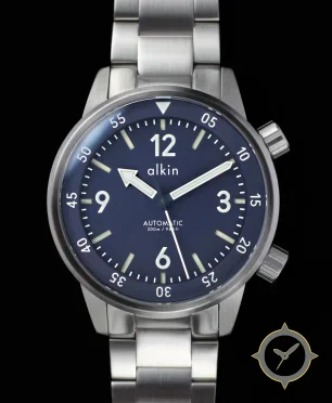 Eine Taucheruhr-Uhr mit einem vielseitigen 39.5mm Gehäuse, das an fast jedes Handgelenk passt, gefertigt aus Edelstahl mit einem Zifferblatt in marineblau und einer besonderen "matte"-Oberfläche.