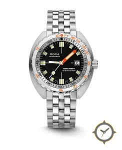 Eine Taucheruhr-Uhr mit einem markanten 50mm Auftritt am Handgelenk, gefertigt aus Edelstahl mit einem Zifferblatt in schwarz und einer besonderen "matte"-Oberfläche.