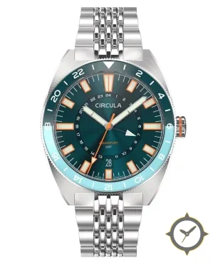 Eine GMT-Uhr mit einem 32.5mm Gehäuse im Vintage-Stil gefertigt aus Edelstahl mit einem Zifferblatt in grün und einer besonderen "sunburst"-Oberfläche und einer echten GMT-Funktion, mit der du eine zweite Zeitzone verfolgen kannst.