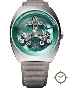 Eine Fahrer-Uhr mit einem markanten 43mm Auftritt am Handgelenk, gefertigt aus Edelstahl mit einem Zifferblatt in türkis und einer besonderen "brushed sunburst"-Oberfläche.