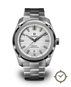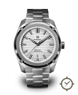 Eine Sport-Uhr mit einem 35mm Gehäuse im Vintage-Stil gefertigt aus Edelstahl mit einem Zifferblatt in weiß und einer besonderen "horizontal lined (striped)"-Oberfläche.