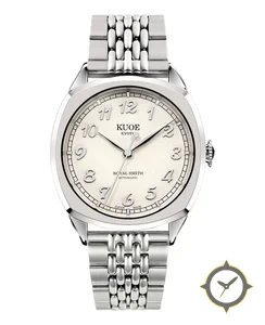 Eine Dress-Uhr mit einem 34.5mm Gehäuse im Vintage-Stil gefertigt aus Edelstahl mit einem Zifferblatt in weiß und einer besonderen "grained/textured"-Oberfläche.