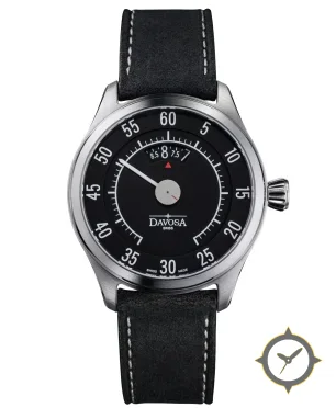 Eine Pilot-Uhr mit einem markanten 47.5mm Auftritt am Handgelenk, gefertigt aus Edelstahl mit einem Zifferblatt in schwarz und einer besonderen "matte"-Oberfläche und einer praktischen Gangreserveanzeige.