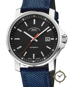 Eine Nautisch-Uhr mit einem 35.5mm Gehäuse im Vintage-Stil gefertigt aus Edelstahl mit einem Zifferblatt in schwarz und einer besonderen "matte"-Oberfläche.