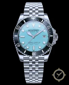 Eine Taucheruhr-Uhr mit einem 36mm Gehäuse im Vintage-Stil gefertigt aus Edelstahl mit einem Zifferblatt in rot und einer besonderen "sunburst gloss"-Oberfläche.