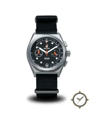Eine Field-Uhr mit einem 31mm Gehäuse im Vintage-Stil gefertigt aus Titan mit einem Zifferblatt in schwarz und einer besonderen "matte"-Oberfläche.