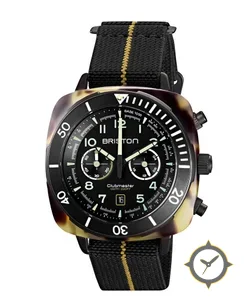Eine Chronograph-Uhr mit einem markanten 42mm Auftritt am Handgelenk, gefertigt aus Harz mit einem Zifferblatt in schwarz und einer besonderen "matte"-Oberfläche.