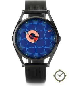 Eine Minimalistisch-Uhr mit einem vielseitigen 39.5mm Gehäuse, das an fast jedes Handgelenk passt, gefertigt aus Edelstahl mit einem Zifferblatt in blau und einer besonderen "printed gloss"-Oberfläche.