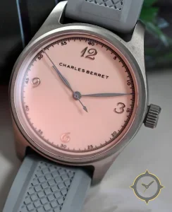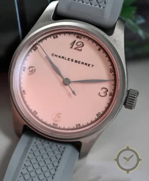 Eine Minimalistisch-Uhr mit einem 35mm Gehäuse im Vintage-Stil gefertigt aus Edelstahl mit einem Zifferblatt in weiß und einer besonderen "lacquered (smooth)"-Oberfläche.