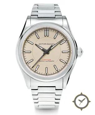 Eine Sport-Uhr mit einem markanten 45mm Auftritt am Handgelenk, gefertigt aus Edelstahl mit einem Zifferblatt in gold und einer besonderen "matte-sandblasted"-Oberfläche.