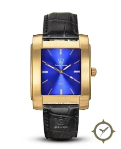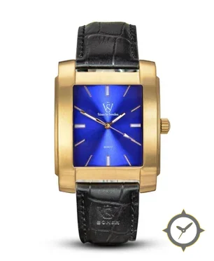 Eine Dress-Uhr mit einem 29.5mm Gehäuse im Vintage-Stil gefertigt aus Gold mit einem Zifferblatt in blau und einer besonderen "sunburst radial"-Oberfläche.