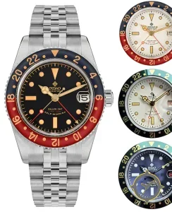 Eine GMT-Uhr mit einem vielseitigen 39mm Gehäuse, das an fast jedes Handgelenk passt, gefertigt aus Edelstahl mit einem Zifferblatt in schwarz und einer besonderen "matte"-Oberfläche und einer echten GMT-Funktion, mit der du eine zweite Zeitzone verfolgen kannst.