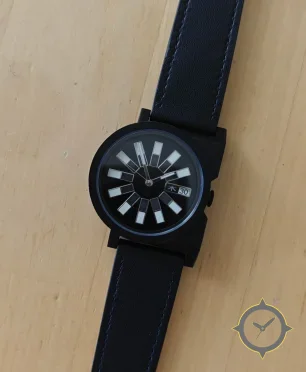 Eine Minimalistisch-Uhr gefertigt aus Edelstahl mit einem Zifferblatt in schwarz und einer besonderen "matte"-Oberfläche.