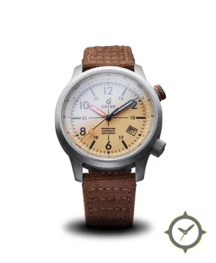 Eine Field-Uhr mit einem 37mm Gehäuse im Vintage-Stil gefertigt aus Edelstahl mit einem Zifferblatt in braun und einer besonderen "matte"-Oberfläche.