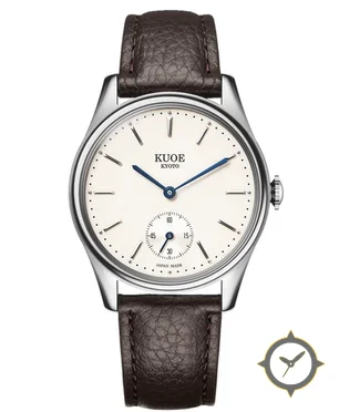 Eine Dress-Uhr mit einem markanten 41.5mm Auftritt am Handgelenk, gefertigt aus Edelstahl mit einem Zifferblatt in weiß und einer besonderen "matte"-Oberfläche.