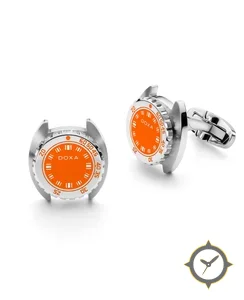Eine Taucheruhr-Uhr mit einem 10mm Gehäuse im Vintage-Stil gefertigt aus Edelstahl mit einem Zifferblatt in orange und einer besonderen "glossy"-Oberfläche.