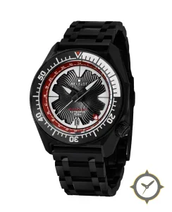 Eine GMT-Uhr mit einem markanten 44mm Auftritt am Handgelenk, gefertigt aus Edelstahl mit einem Zifferblatt in weiß und einer besonderen "textured radial guilloche / floral relief"-Oberfläche und einer echten GMT-Funktion, mit der du eine zweite Zeitzone verfolgen kannst.