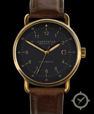 Eine Pilot-Uhr mit einem markanten 44.5mm Auftritt am Handgelenk, gefertigt aus Bronze mit einem Zifferblatt in schwarz und einer besonderen "matte"-Oberfläche.