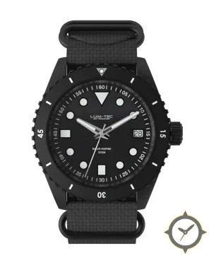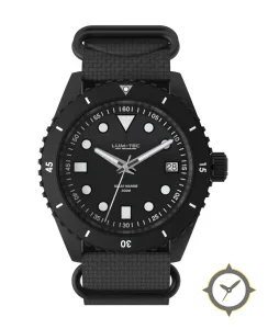 Eine Taucheruhr-Uhr mit einem markanten 41.5mm Auftritt am Handgelenk, gefertigt aus Edelstahl mit einem Zifferblatt in schwarz und einer besonderen "matte"-Oberfläche.