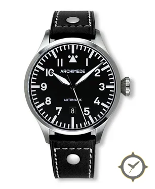 Eine Pilot-Uhr mit einem vielseitigen 39.5mm Gehäuse, das an fast jedes Handgelenk passt, gefertigt aus Edelstahl mit einem Zifferblatt in schwarz und einer besonderen "matte"-Oberfläche.