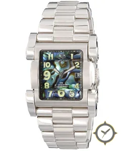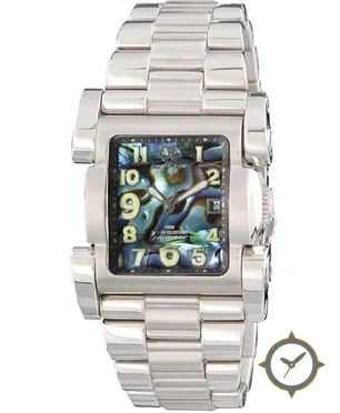 Eine Luxus-Uhr mit einem 30mm Gehäuse im Vintage-Stil gefertigt aus Edelstahl mit einem Zifferblatt in türkis und einer besonderen "mother-of-pearl (abalone)"-Oberfläche.