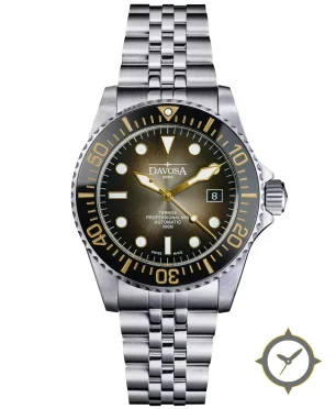 Eine Taucheruhr-Uhr mit einem markanten 49.5mm Auftritt am Handgelenk, gefertigt aus Edelstahl mit einem Zifferblatt in grün und einer besonderen "sunburst fumé gradient"-Oberfläche.