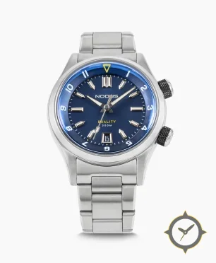 Eine Taucheruhr-Uhr mit einem vielseitigen 40.5mm Gehäuse, das an fast jedes Handgelenk passt, gefertigt aus Edelstahl mit einem Zifferblatt in blau und einer besonderen "sunburst"-Oberfläche.