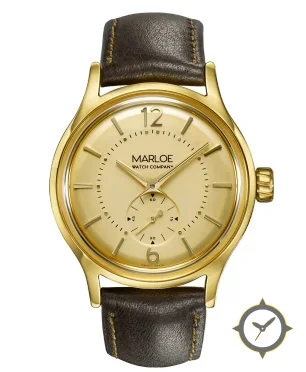 Eine Dress-Uhr mit einem 32mm Gehäuse im Vintage-Stil gefertigt aus Gold mit einem Zifferblatt in gold und einer besonderen "lacquer"-Oberfläche.