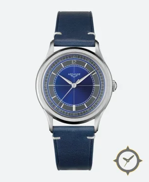 Eine Dress-Uhr mit einem vielseitigen 41mm Gehäuse, das an fast jedes Handgelenk passt, gefertigt aus Edelstahl mit einem Zifferblatt in blau und einer besonderen "sunburst"-Oberfläche.