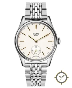 Eine Dress-Uhr mit einem 31mm Gehäuse im Vintage-Stil gefertigt aus Edelstahl mit einem Zifferblatt in weiß und einer besonderen "matte lacquer"-Oberfläche.
