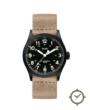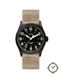 Eine Field-Uhr mit einem 30mm Gehäuse im Vintage-Stil gefertigt aus Edelstahl mit einem Zifferblatt in schwarz und einer besonderen "matte"-Oberfläche.