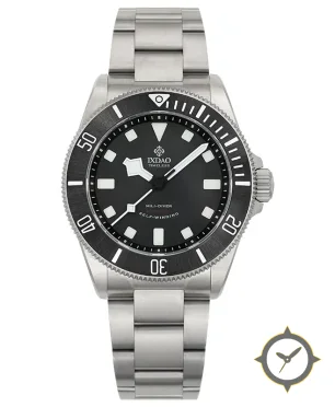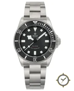 Eine Taucheruhr-Uhr mit einem 32.5mm Gehäuse im Vintage-Stil gefertigt aus Edelstahl mit einem Zifferblatt in schwarz und einer besonderen "matte"-Oberfläche.