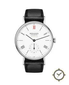Eine Dress-Uhr mit einem 31mm Gehäuse im Vintage-Stil gefertigt aus Edelstahl mit einem Zifferblatt in weiß und einer besonderen "matte lacquer"-Oberfläche.